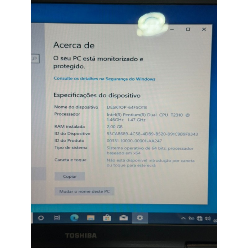 Processador: Intel(R) Pentium(R) Dual Cpu T2310 1.46GHz 1.47 GHz