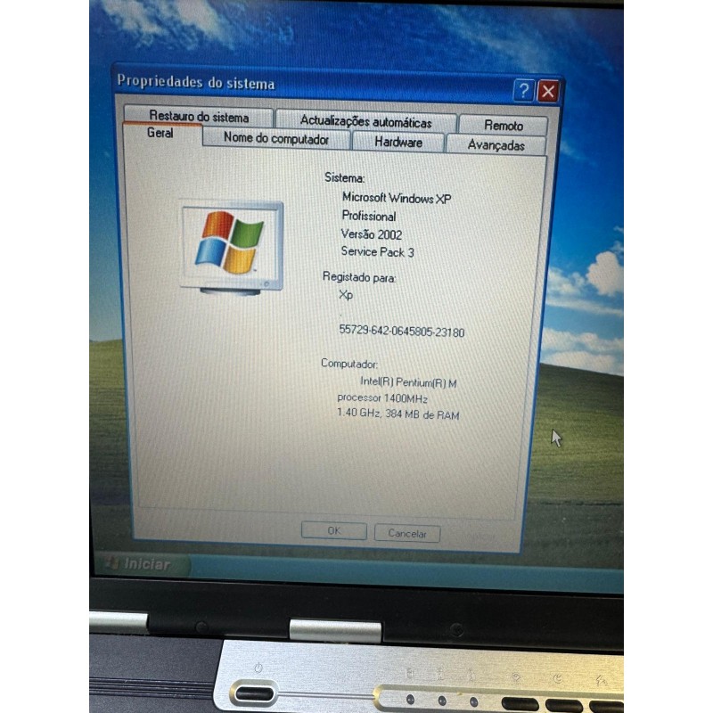 Processador: Intel(R) Pentium(R) M 1400MHz